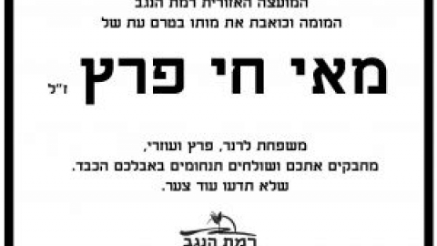 המועצה המומה וכואבת את לכתו בטרם עת של מאי פרץ ז"ל