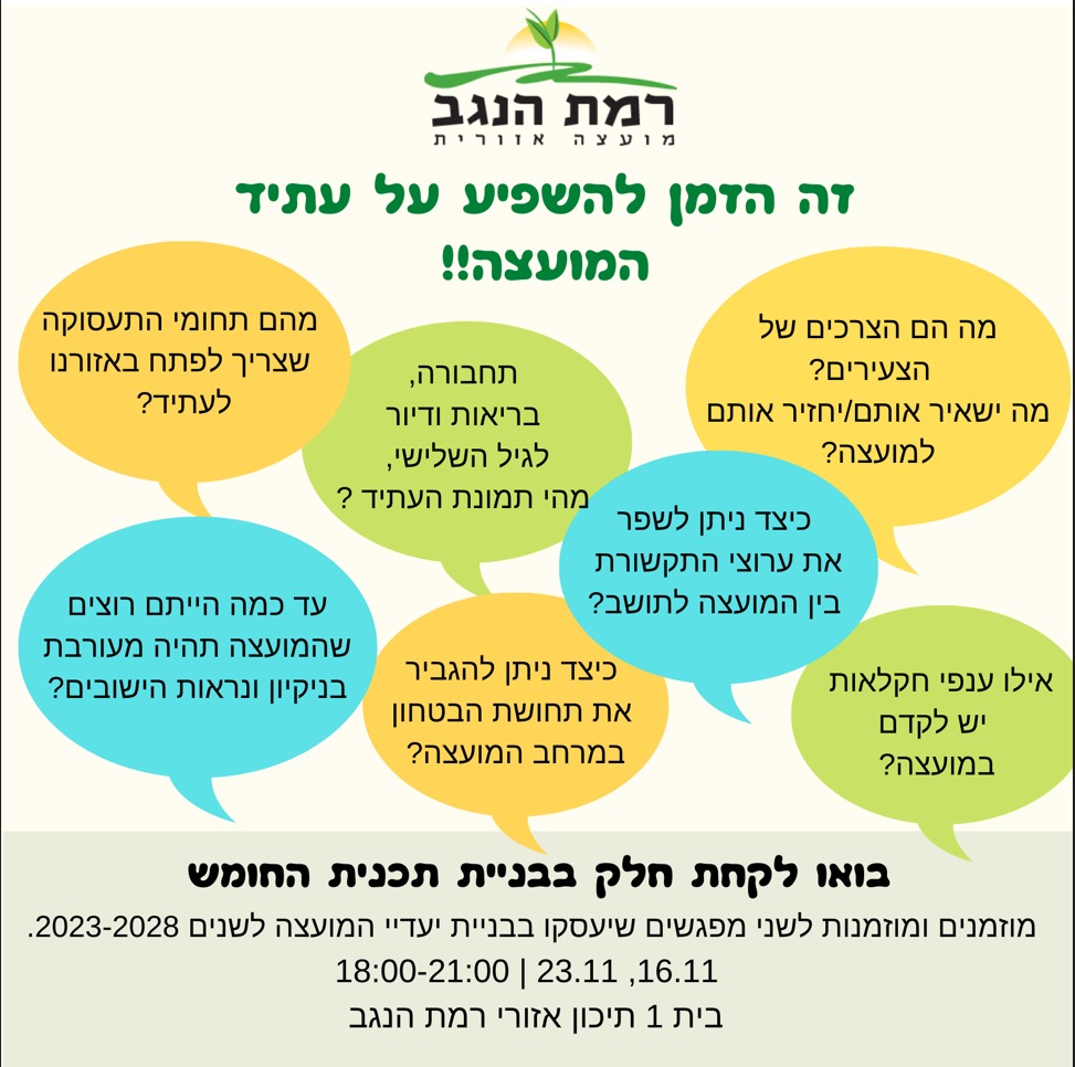 בואו לקחת חלק בבניית תוכנית החומש של המועצה במסגרת מפגשי שיתוף ציבור.