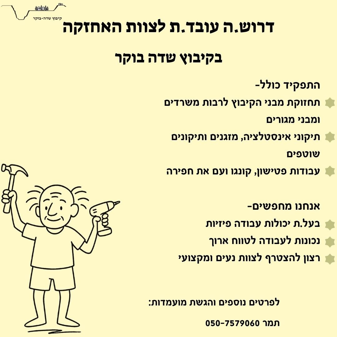 דרוש.ה איש / אשת צוות לצוות האחזקה בקיבוץ שדה בוקר
