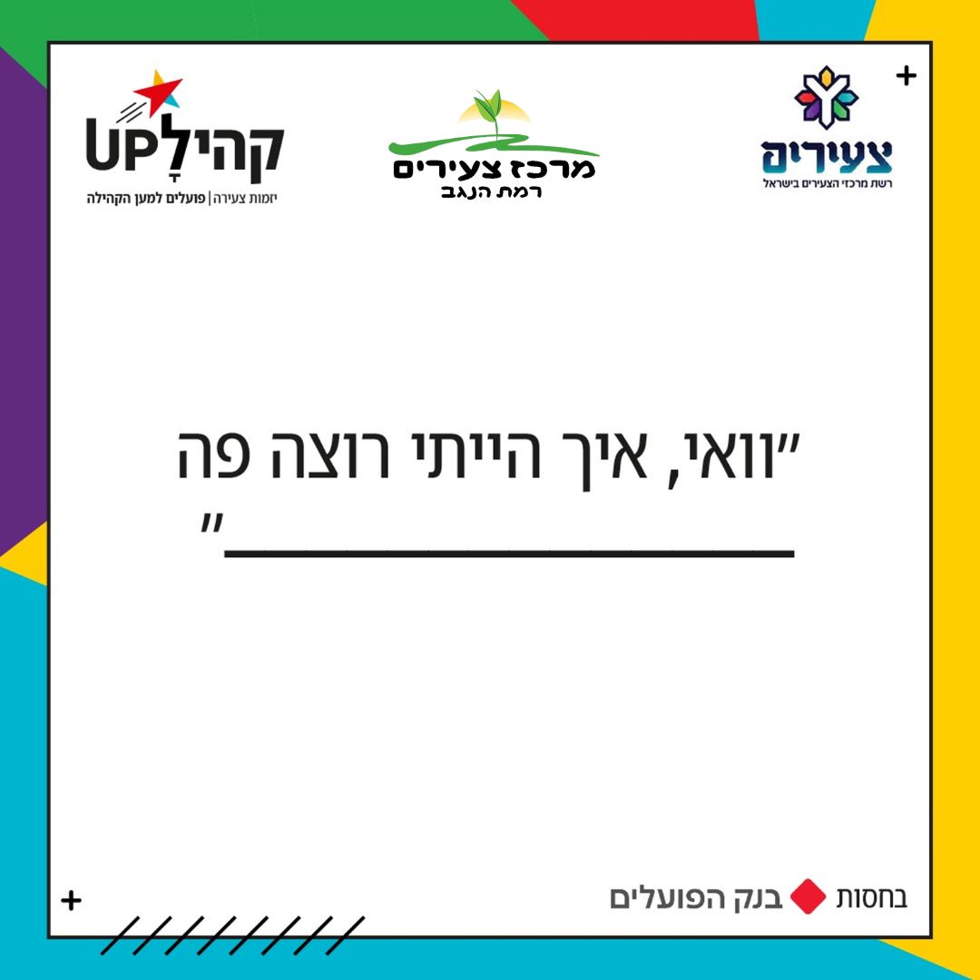 מרכזי הצעירים בישראל, בחסות בנק הפועלים, גאים להציג את "קהילUP - "קמפיין שיש לו רק מטרה אחת: לקחת את הרעיונות שלכם לעשות טוב בקהילה, ולממש אותם.